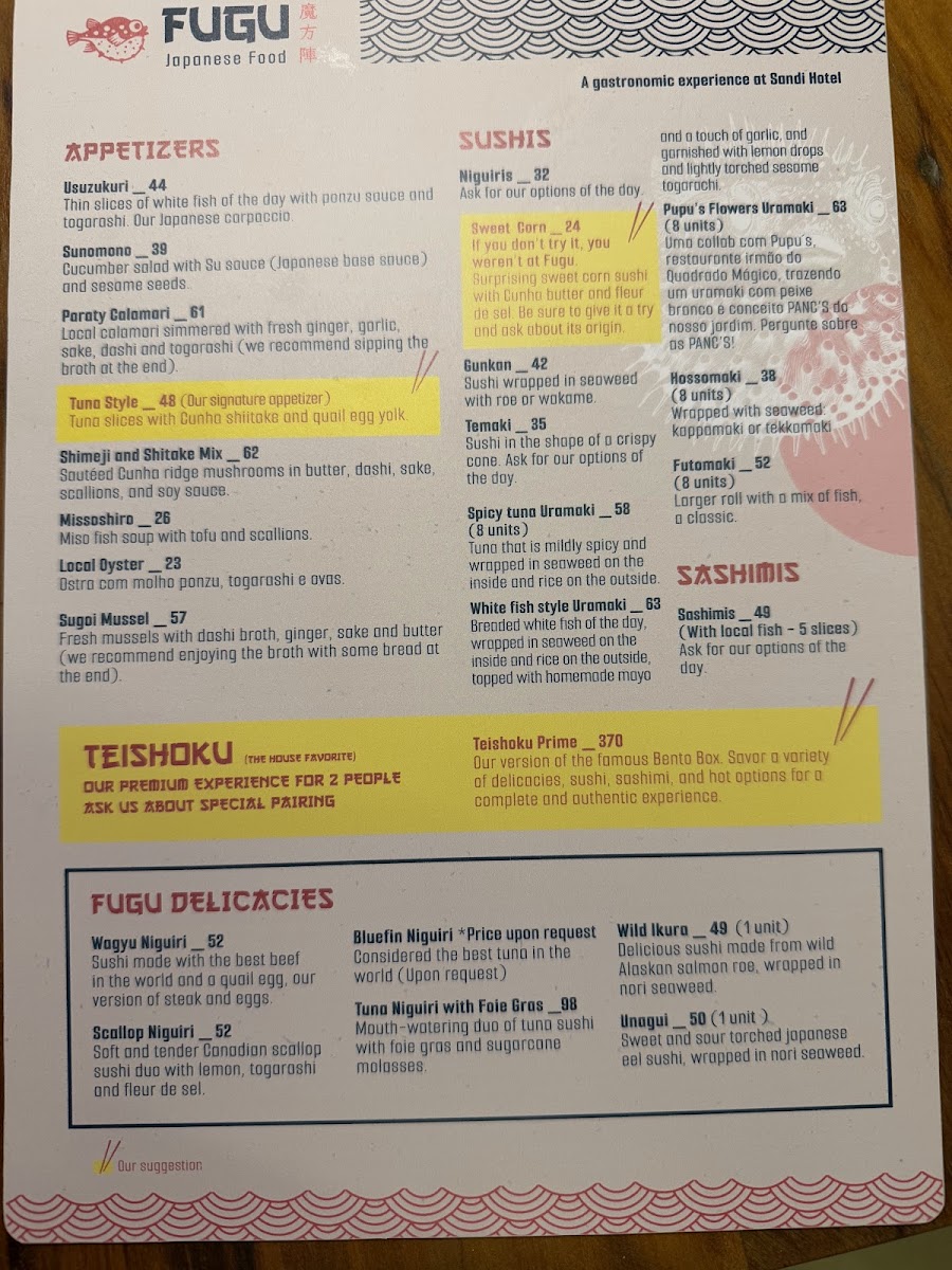 Fugu Paraty Menu